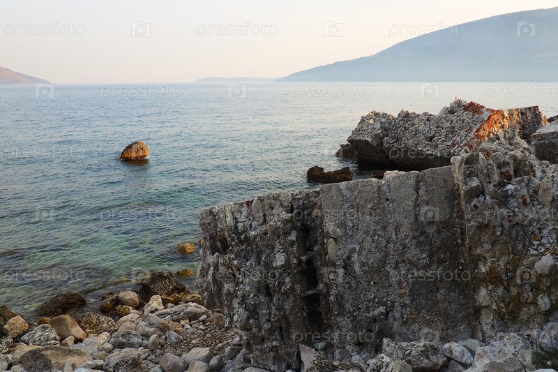 Форт Месалуна Цитадель Месалуна Цитадель Черногория, Герцег-Нови. Руины древней каменной крепости, разрушенной землетрясением, обрушились в Адриатическое море, Средиземное. Достопримечательности