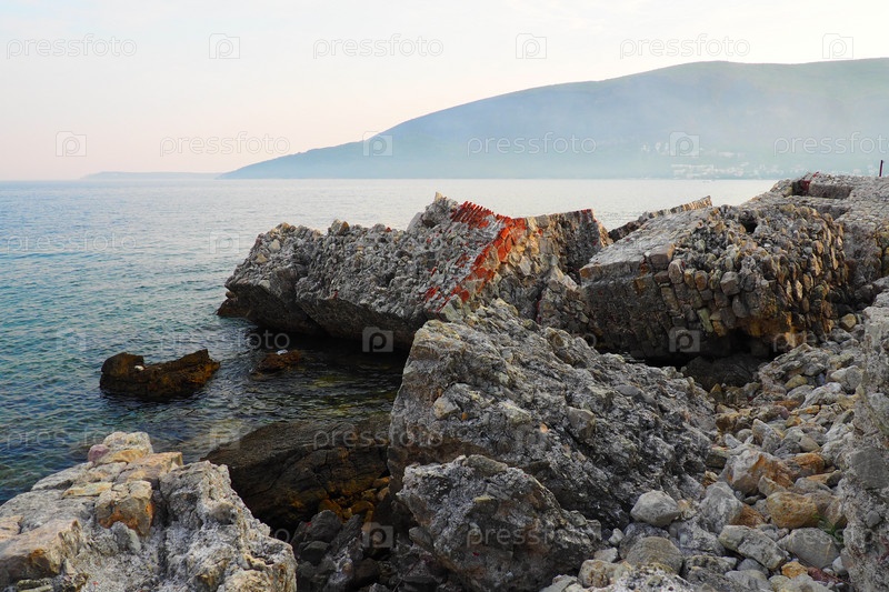 Форт Месалуна Цитадель Месалуна Цитадель Черногория, Герцег-Нови. Руины древней каменной крепости, разрушенной землетрясением, обрушились в Адриатическое море, Средиземное. Достопримечательности