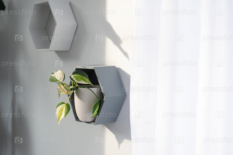 Полки на стене в виде сот с комнатными растениями в белом интерьере дома. Современный декор Комнатное растение уход за комнатным растением, зеленый дом
