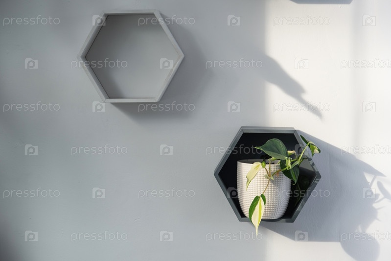 Полки на стене в виде сот с комнатными растениями в белом интерьере дома. Современный декор Комнатное растение уход за комнатным растением, зеленый дом