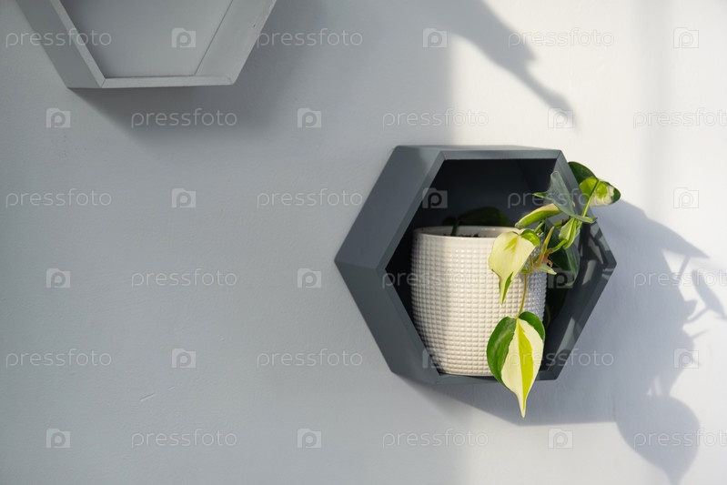 Полки на стене в виде сот с комнатными растениями в белом интерьере дома. Современный декор Комнатное растение уход за комнатным растением, зеленый дом