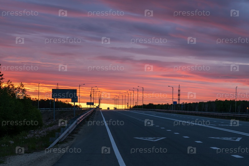 Закат на дороге в летний период в вечернее время