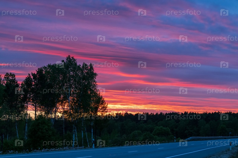 Закат на дороге в летний период в вечернее время