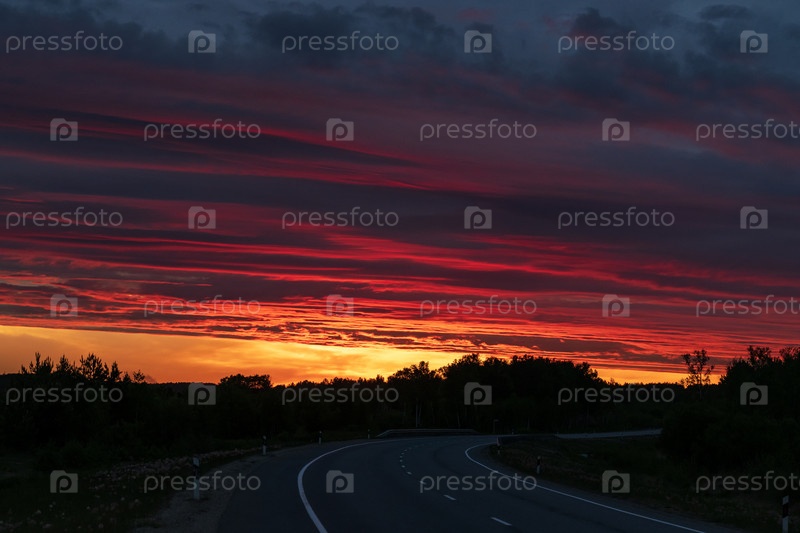 Закат на дороге в летний период в вечернее время