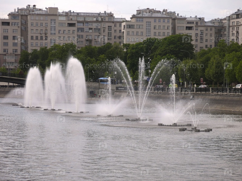 Фонтаны на Москве-реке летом