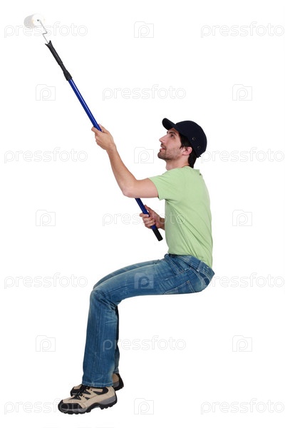 Мужчина красит стену валиком