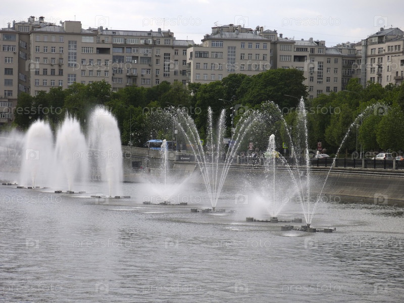 Фонтаны на Москве-реке летом