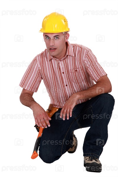 Строительный рабочий на коленях