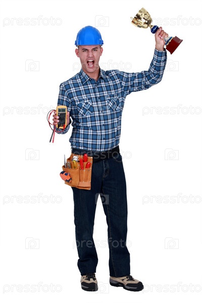 Человек с вольтметром и трофеем в руке