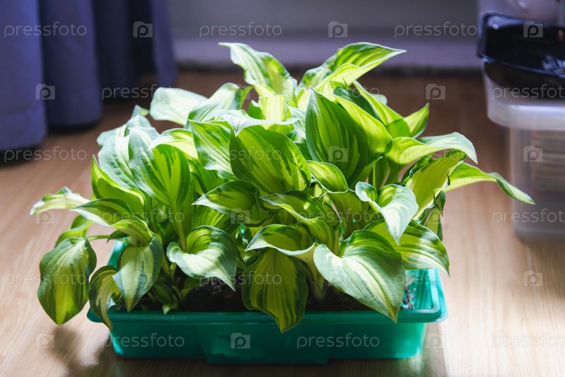 Хоста крупным планом. Зеленые листья, рассада