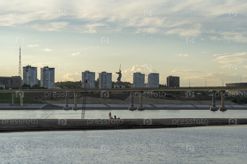 Волгоград, Россия, 22 июля 2020 г., памятник Родине на Мамаевом кургане в Волгограде, вид с реки Волги
