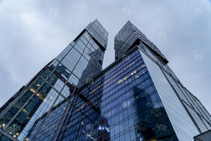 Москва, Россия, 30 ноября 2020 г., Московский международный бизнес-центр (Москва-Сити), ночная съемка с длительной выдержкой, выборочный фокус, блики на стекле, ночь тумана и облаков