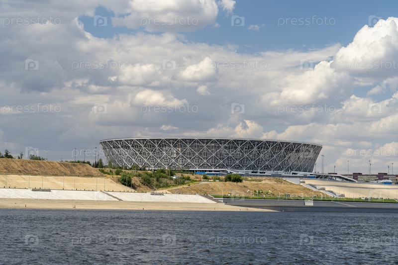 Волгоград, Россия, 22 июля 2020 г., футбольный стадион "Волгоград Арена", вид с реки Волги
