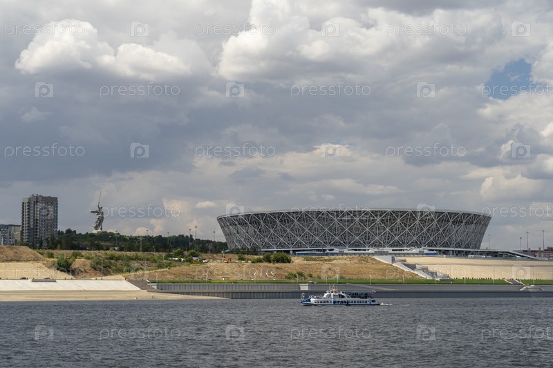 Волгоград, Россия, 22 июля 2020 г., футбольный стадион "Волгоград Арена", вид с реки Волги