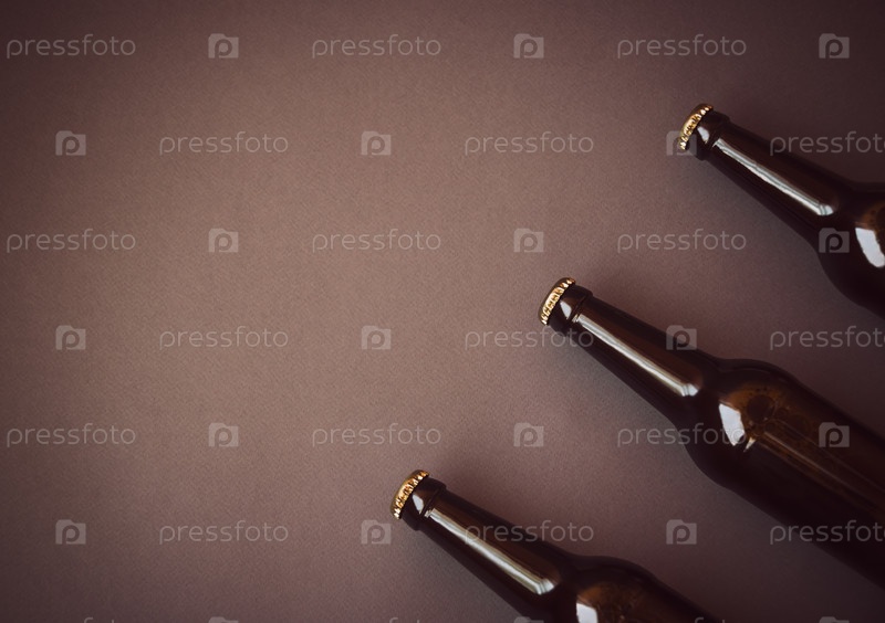 Стеклянные бутылки пива. Выборочный фокус. Вид сверху, пространство для копирования