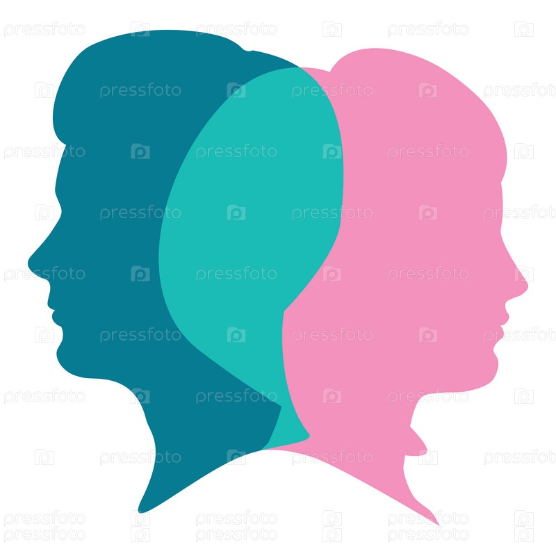 Мужская женская голова пересекается