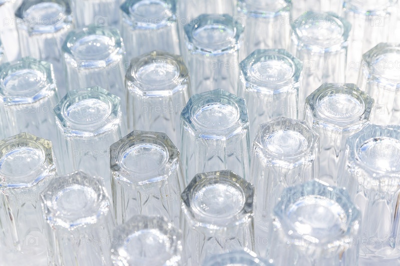 Россия. Санкт-Петербург. Стеклянные пустые бокалы для напитков. Россия. Санкт-Петербург. Стеклянные пустые стаканы для напитков