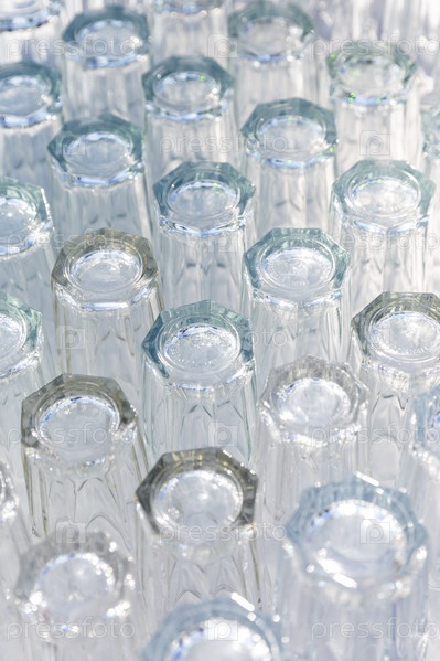 Россия. Санкт-Петербург. Стеклянные пустые бокалы для напитков. Россия. Санкт-Петербург. Стеклянные пустые стаканы для напитков