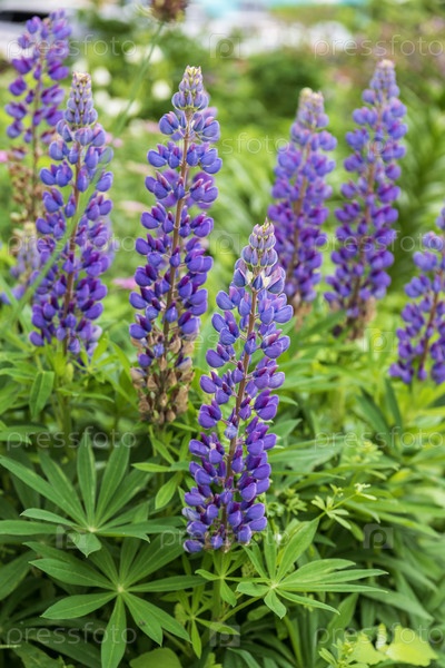 Цветы люпина, распускающиеся в саду