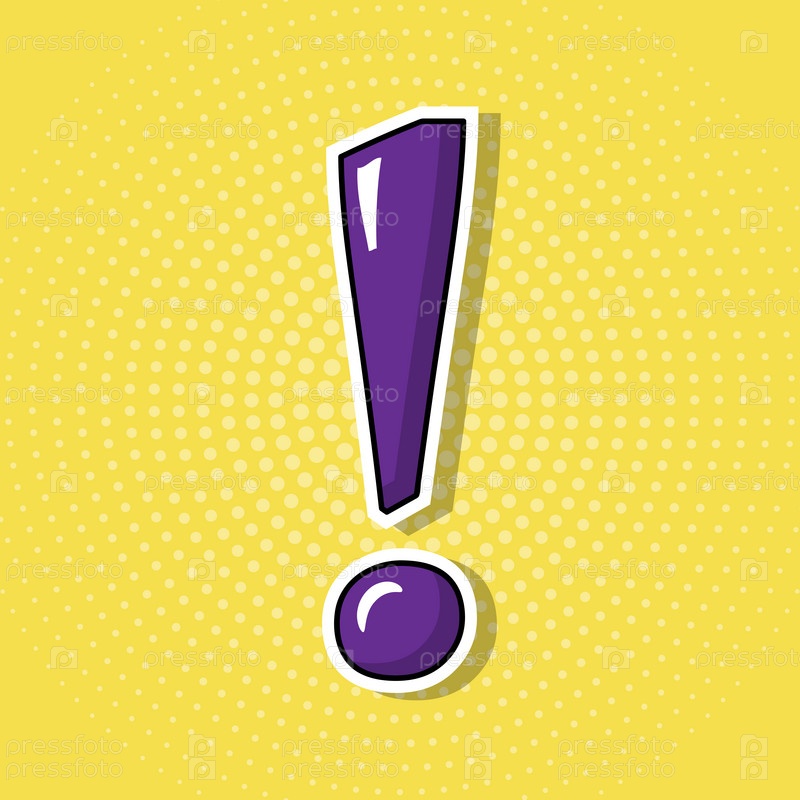 Восклицательный знак на желтом фоне. Стикер в стиле поп-арт