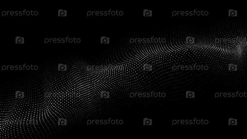 Волна частиц. Абстрактный темный фон с динамической волной. Понятие о технологическом фоне. Большие данные. Векторная иллюстрация