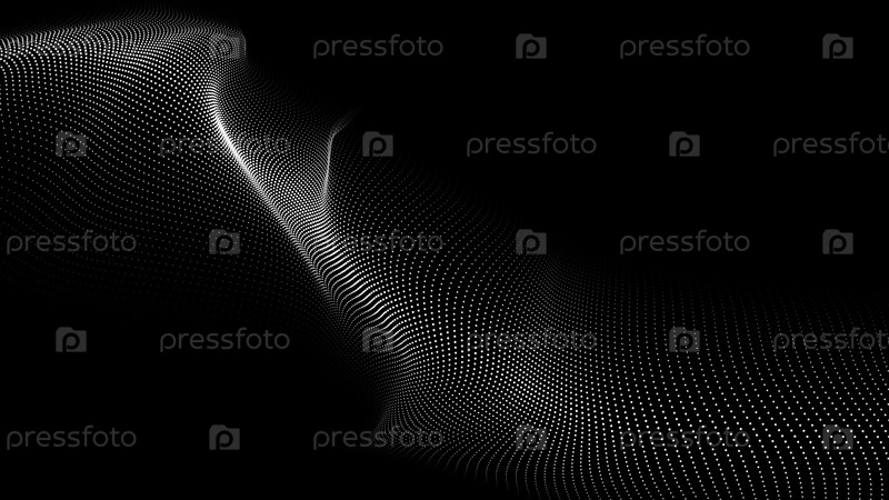 Движущаяся цифровая 3D-волна. футуристический темный фон с динамическими белыми частицами. Концепция больших данных. Киберпространство. 3d визуализация