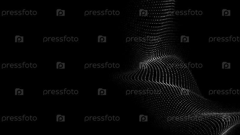 Волна частиц. Абстрактный темный фон с динамической волной. Понятие о технологическом фоне. Большие данные. Векторная иллюстрация
