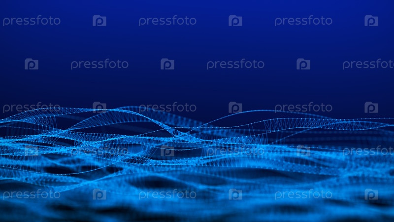 ДНК из движущейся волны и частиц Абстрактный темный фон Медицинская наука Биотехнология Понятие о генной клетке Синие точки и линии 3D визуализация