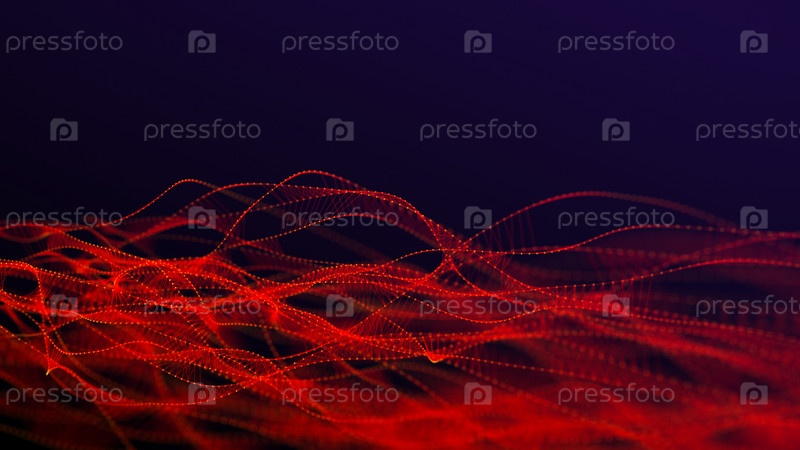 ДНК из движущейся волны и частиц Абстрактный фон Медицинская наука Биотехнология Понятие генной клетки Красные точки и линии 3D визуализация
