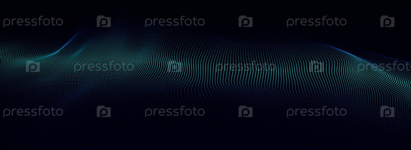 Футуристическая синяя волна частиц. Концепция больших данных. Подключение к сети. Кибернетика. Абстрактный фон. 3d визуализация