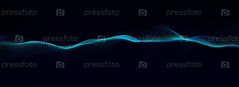 Футуристическая синяя волна частиц. Концепция больших данных. Подключение к сети. Кибернетика. Абстрактный фон. 3d визуализация