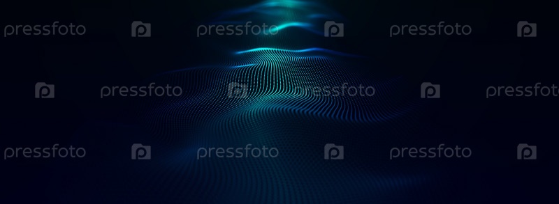 Футуристическая синяя волна частиц. Концепция больших данных. Подключение к сети. Кибернетика. Абстрактный фон. 3d визуализация