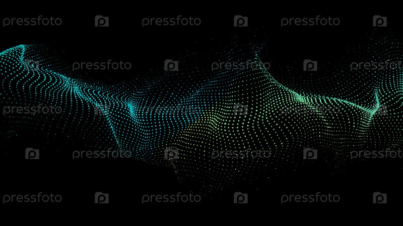 Футуристическая волна частиц. Концепция больших данных. Подключение к сети. Кибернетика. Абстрактный темный фон в стиле украинского флага. 3D визуализация
