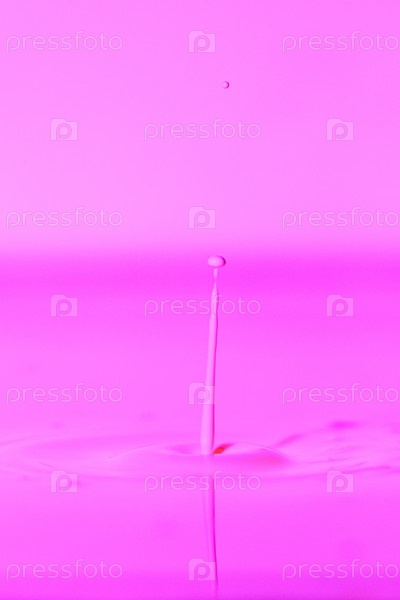 Капля попадает в густую жидкость с розовым фоном. Абстрактный красочный фон