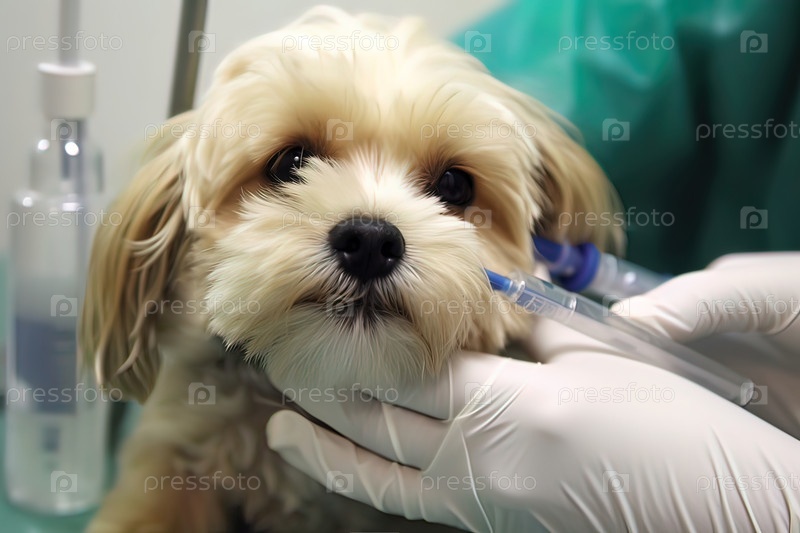 Врач делает укол маленькой собаке в ветеринарной клинике. Генеративный ИИ