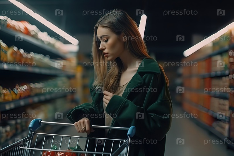 Женщина выбирает продукты в магазине. Генеративный ИИ