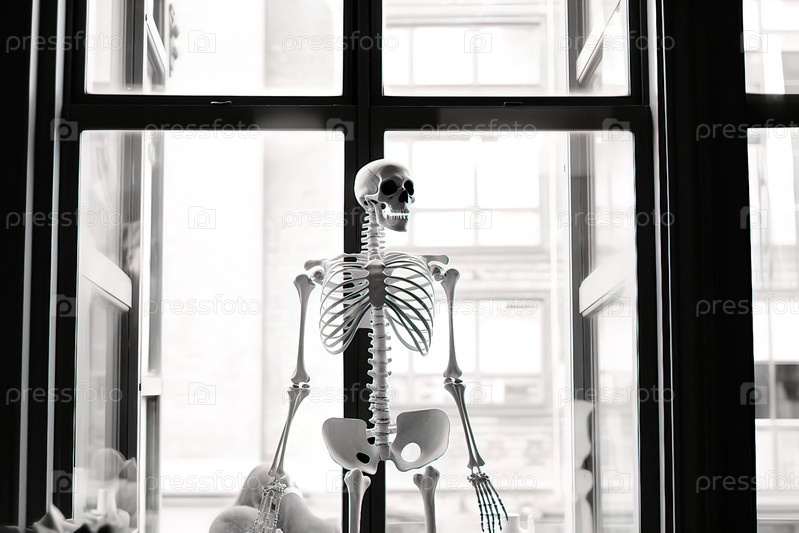 Макет человеческого скелета в кабинете врача в клинике без людей генеративный ИИ иллюстрация высокого качества