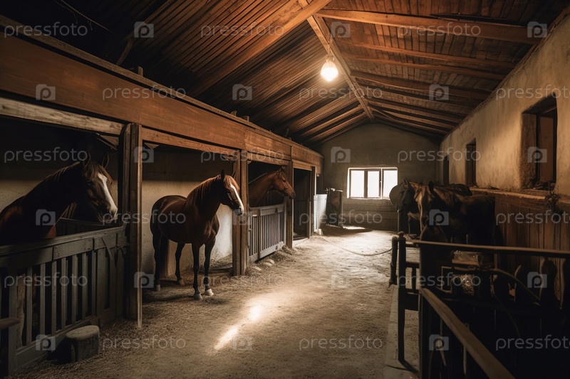 Конюшня с ухоженными лошадьми. Генеративный ИИ