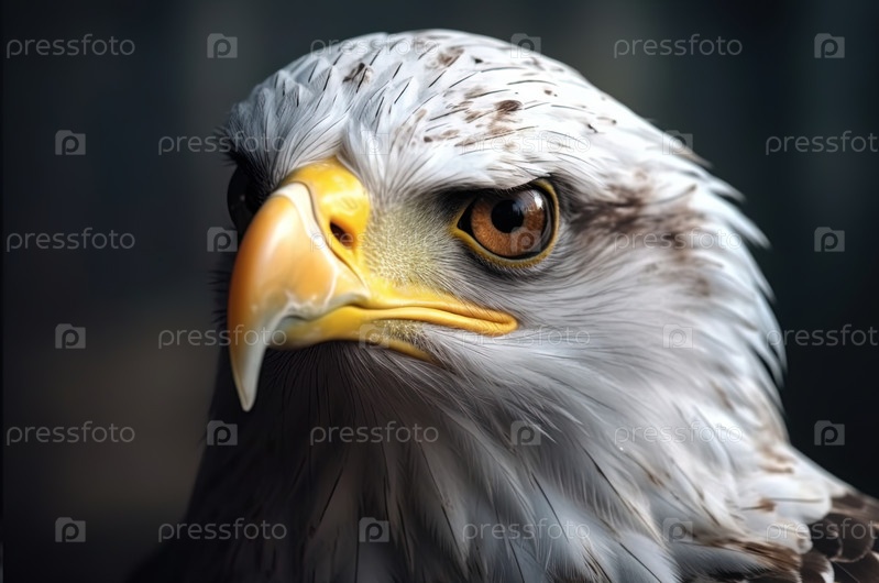 Портрет белоголового орла, белая голова, желтый клюв, смотрящий в камеру. Генеративный ИИ