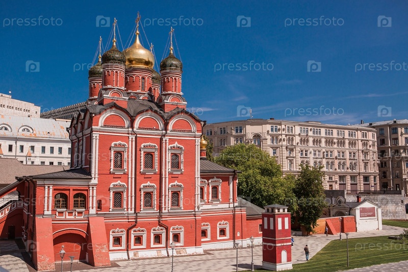 Москва, Россия, 2023: Знаменский собор на Варварке в осенний день. Вид на храм со стороны парка «Зарядье»
