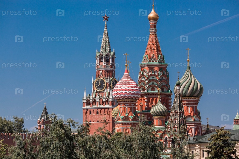 МОСКВА, РОССИЯ - 9 ИЮНЯ 2023 г.: Собор Василия Блаженного на Васильевском спуске на Красной площади в солнечный день на фоне ярко-голубого неба. Популярная туристическая достопримечательность Москвы