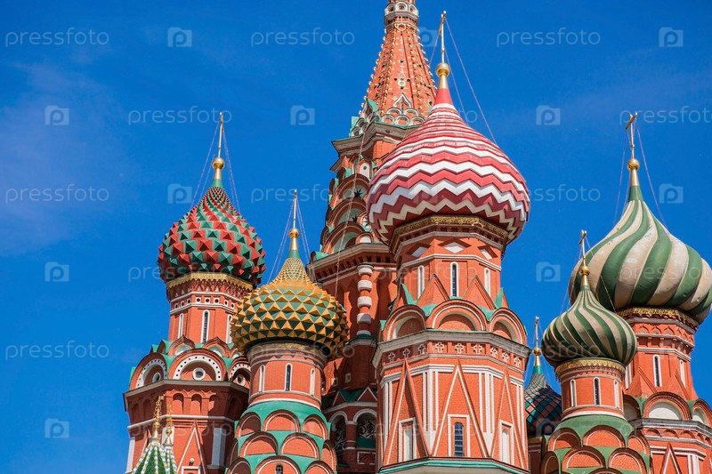 МОСКВА, РОССИЯ - 9 ИЮНЯ 2023 г.: Собор Василия Блаженного на Васильевском спуске на Красной площади в солнечный день на фоне ярко-голубого неба. Популярная туристическая достопримечательность Москвы