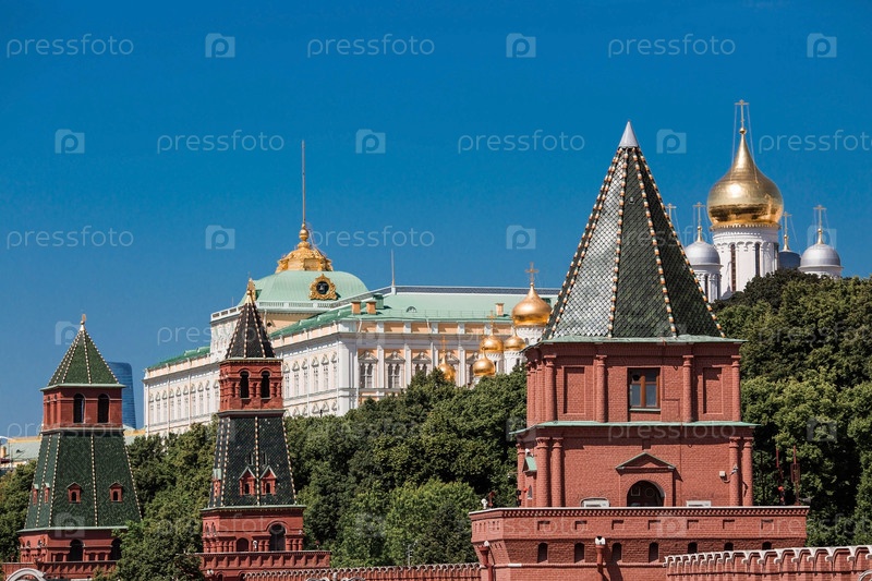 МОСКВА, Россия - 9 июня 2023 г.: Вид на Москву в летний день. Кремлевские башни. Большой Кремлевский Дворец. Кремлевская набережная. Популярная туристическая достопримечательность. Визитная карточка Москвы