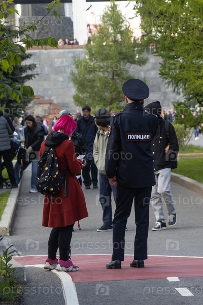 Полицейский разговаривает с девушкой