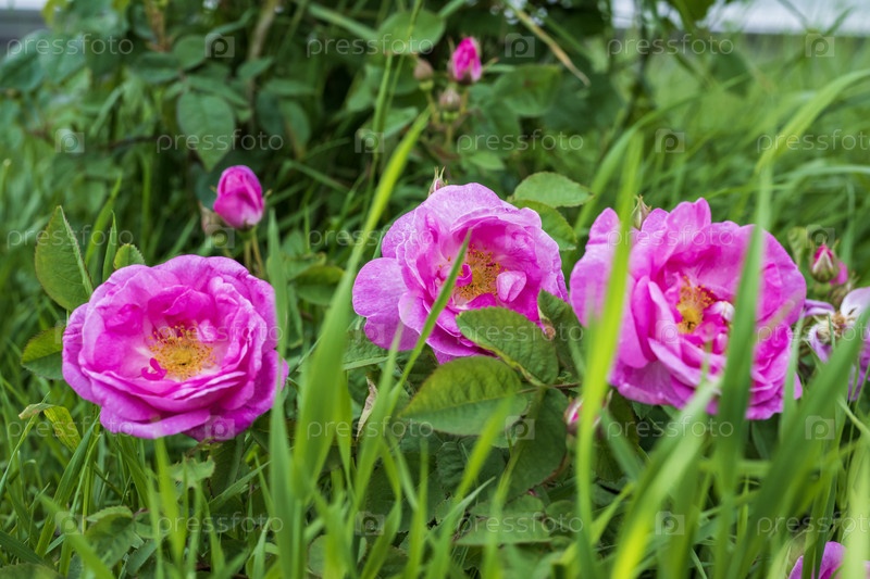 Цветы шиповника в зеленой траве