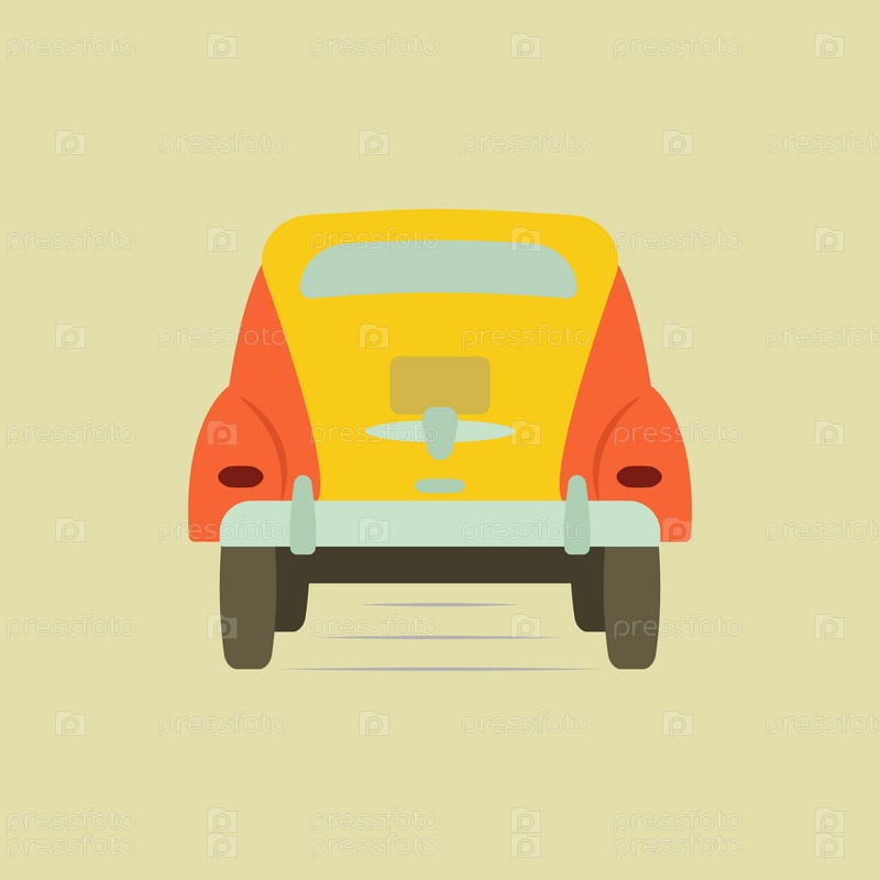 Ретро автомобиль, вид сзади. Иллюстрация в плоском стиле