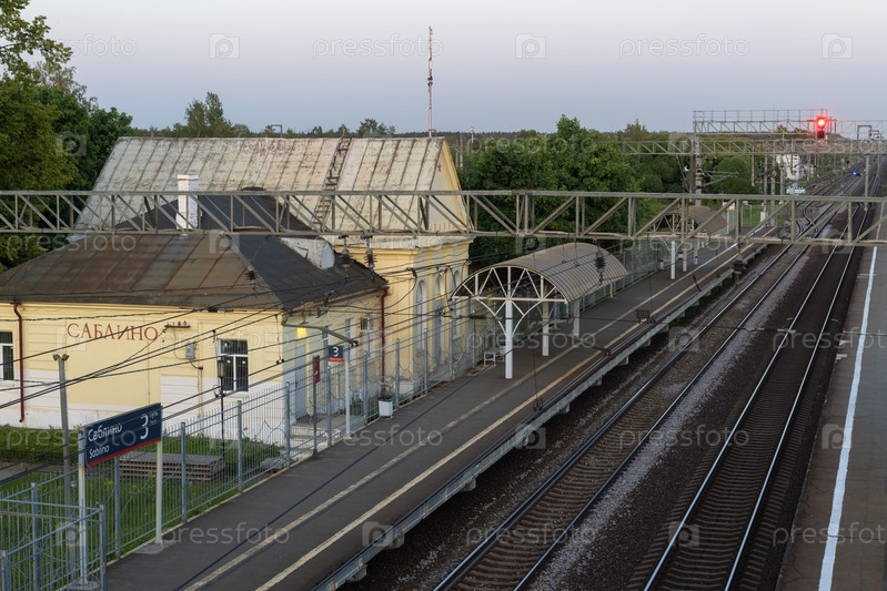 Железнодорожная станция Саблино в Ленинградской области. Вид на железную дорогу и платформу