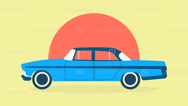 Ретро машина, вид сбоку. Иллюстрация в плоском стиле