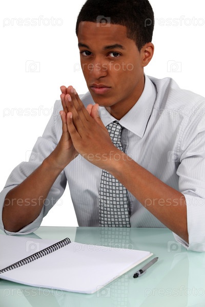 Скучающий мужчина перед пустым блокнотом