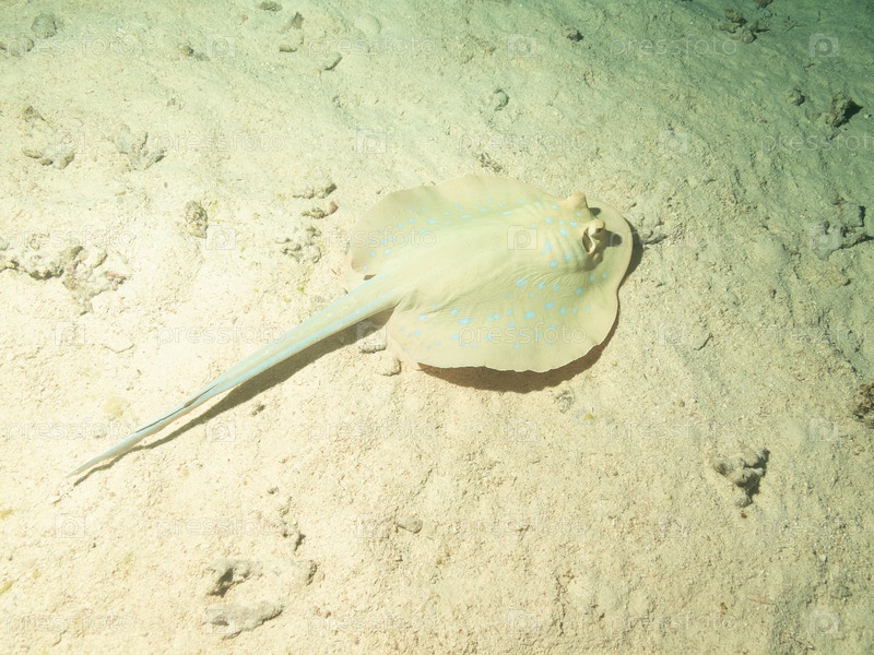 Синий пятнистый скат или Taeniura lymma в глубинах Красного моря